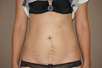 45-year-old female patient with a history of breast reduction. The patient came to OC with the desire for scar correction. Scar excision was performed with application of an internal bra.